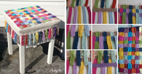 Таким же образом можно связать чехол на табуретку. Посмотрите, как это сделать:
