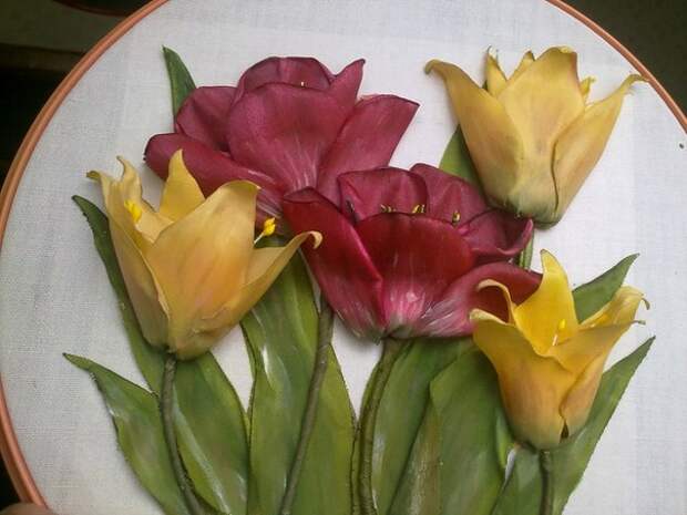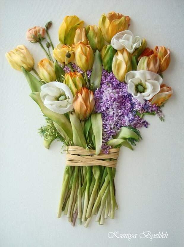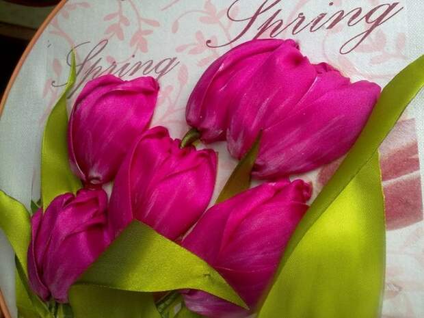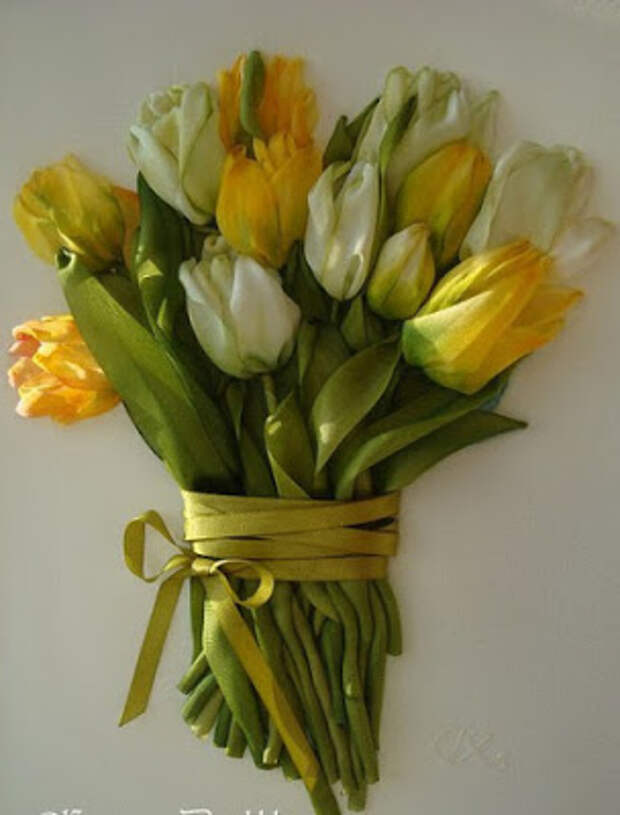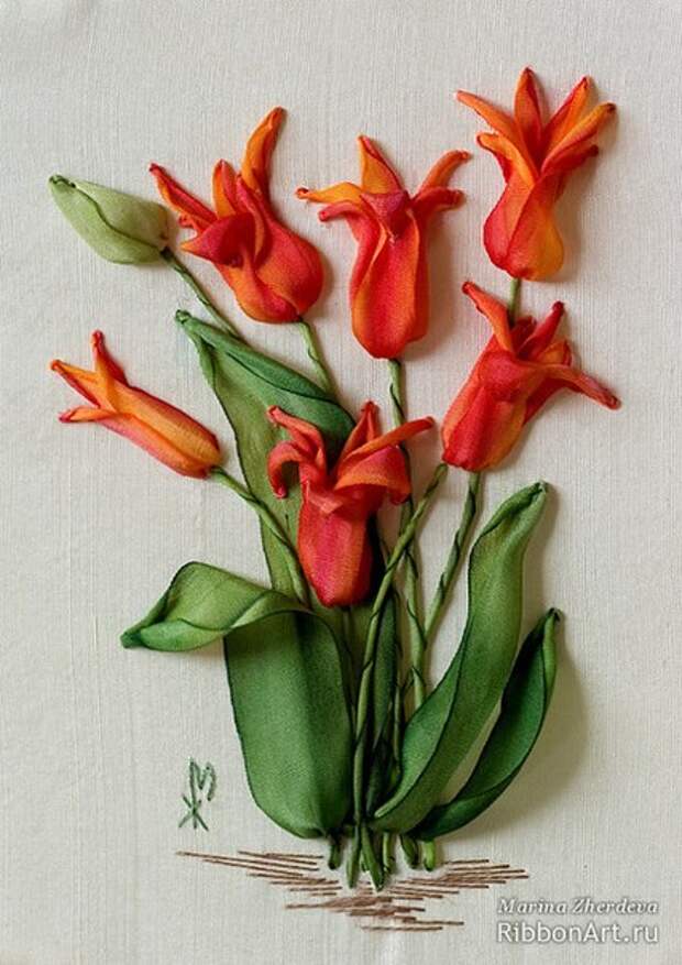 Вышиваем лентами тюльпаны! Работы мастериц + МК
