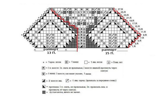 13 ряд — *из 1 лиц вывязываем 2 лиц., 31 лиц, из 1 лиц вывязываем 2 лиц, 1 лиц, 1 изн*