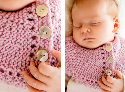 Манишку слегка увлажнить, растянуть и дать высохнуть. Пришить пуговицы.Универсальное вязаное изделие для детей