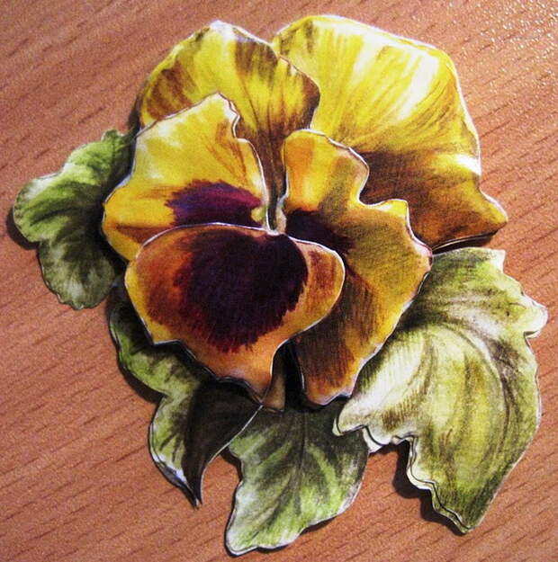 5.Вот так выглядит полностью собранный цветок (фото с разных сторон). Его можно покрыть лаком в несколько слоев с промежуточной сушкой.
