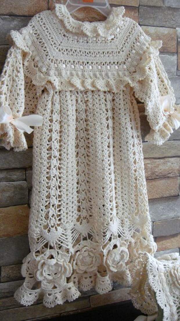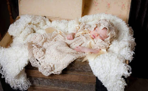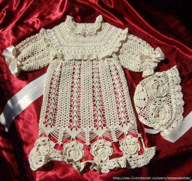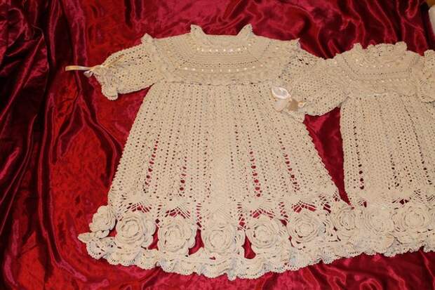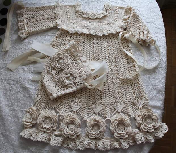Наконец то дошли руки закончить задумку. Чепец я связала давно а до платья не доходили руки.