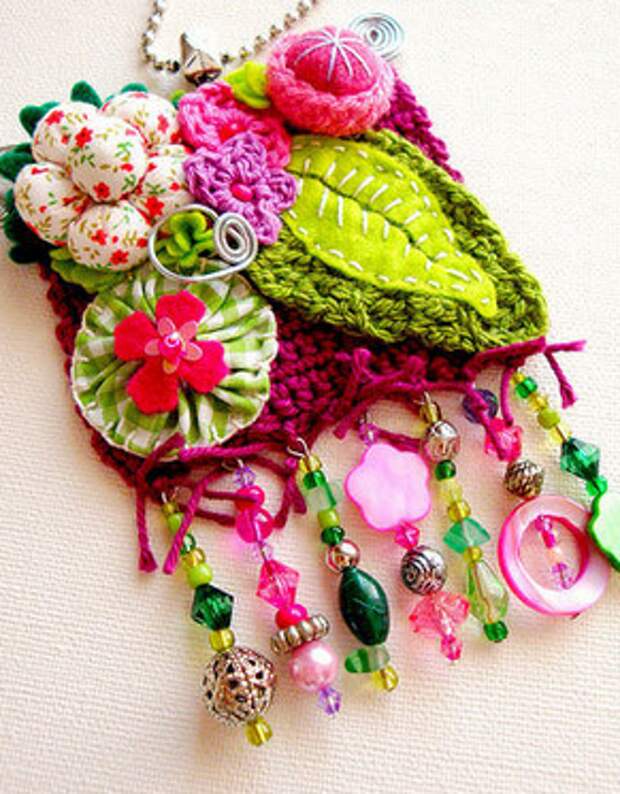 У каждого дома найдется кучка разного рода ненужностей: разрозненых бусин, симпатичных пуговок, шнурочков, ленточек от подарков, вязаных салфеточек и манжет, кусочков красивой ткани от блузки из секонд-хенда и прочего.