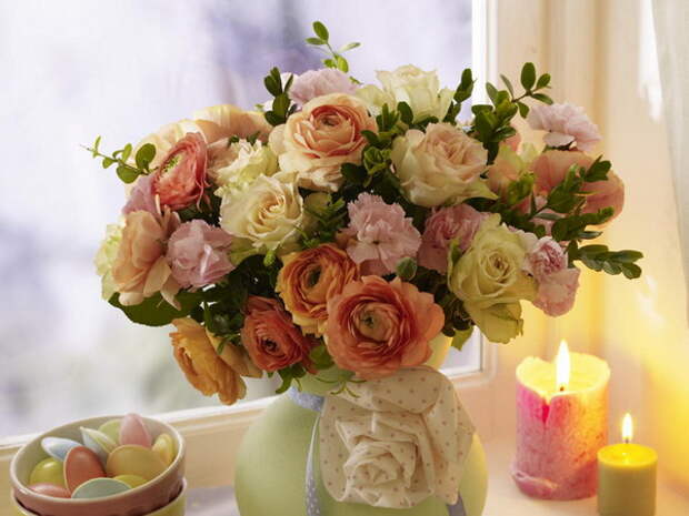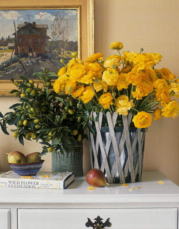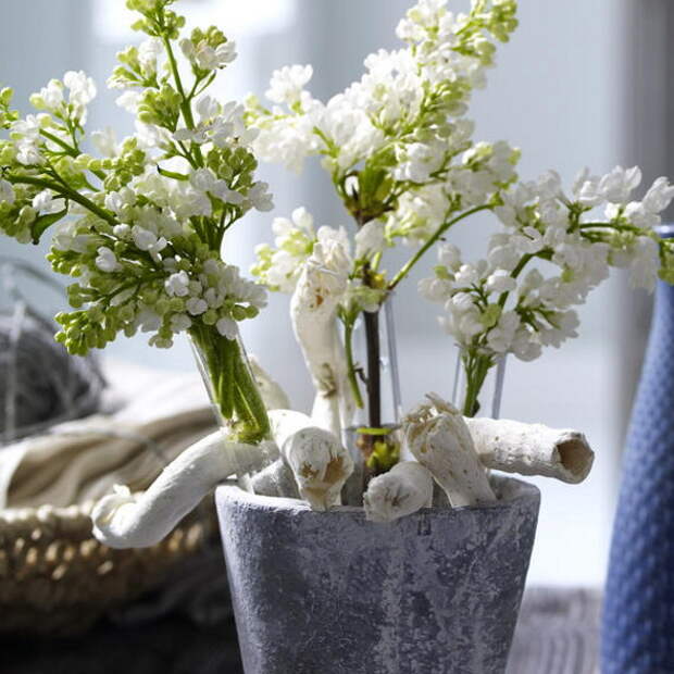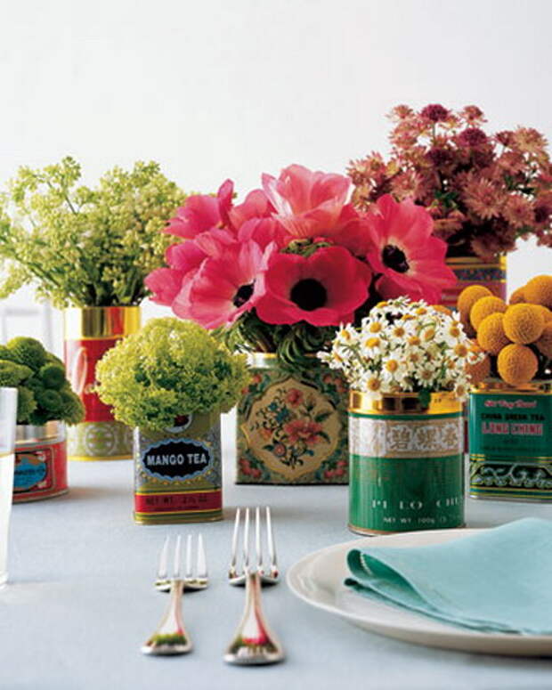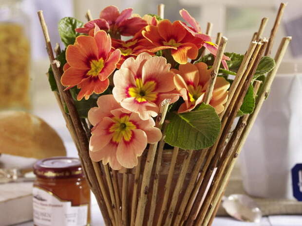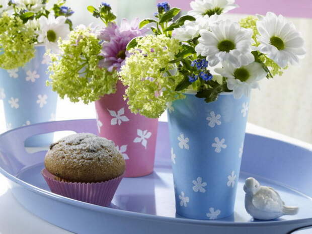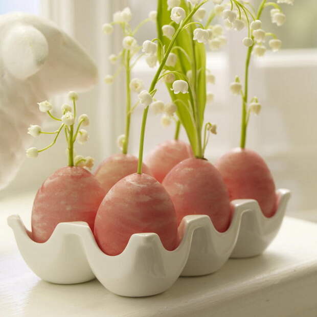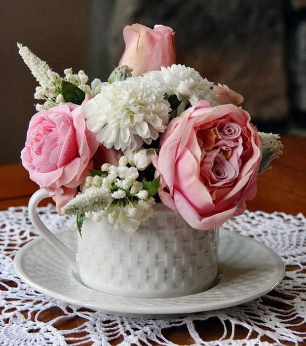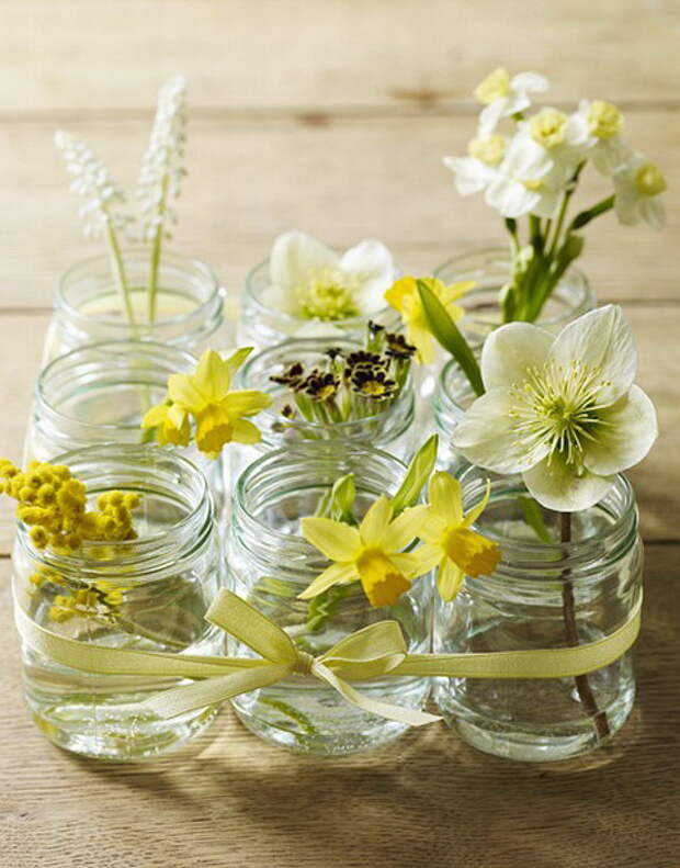 Обращаем ваше внимание, что мы собрали здесь решения, которые не потребуют от вас сложных навыков. Главная черта всех вариантов из этой подборки - легкость исполнения + минимум времени до оригинального результата. Найдите идеи для вдохновения, и пусть творчество доставляет вам радость! Идея-1: непривычные емкости В зависимости от сезона “вазами” могут стать: пасхальные яйца, тыква, елочные игрушки или крупные раковины. Если предмет удерживает воду, вы наливаете ее прямо в емкость. В другом случае необходимую цветам влагу может дать специальная губка, которую используют флористы (также пропитанная водой). А еще в роли ваз для цветов могут выступать винтажные жестяные и стеклянные банки, чайные чашки и кувшины, креманки и сахарницы от едва уцелевшего сервиза.