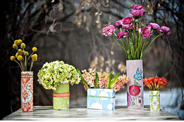 Обзор оригинальных способов украсить интерьер вазами для цветов. Эти идеи для всех, кто не останавливается на покупке, а идет дальше, предпочитая нестандартный взгляд на привычные вещи и/или творчество своими руками. Вы увидите несколько идей на эту тему, от выбора необычных емкостей до украшения готовых ваз тканью, бумагой, наклейками и природными материалами.