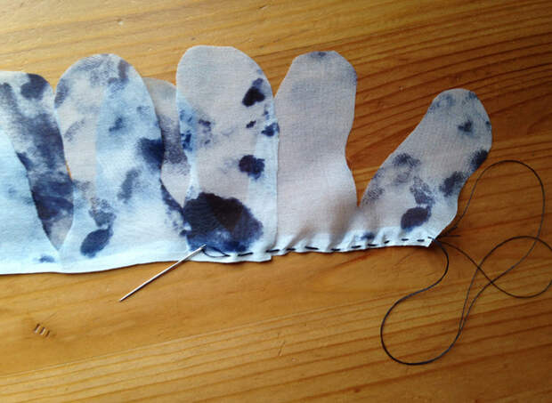 Присборите вручную мелкими стежками полосу по краю среза. Или проложите строчку с максимальной длиной стежка на швейной машинке.