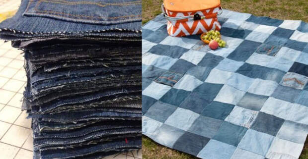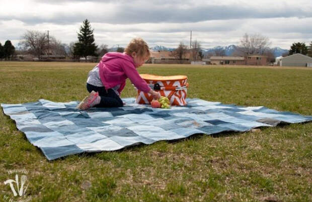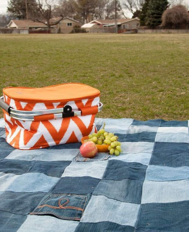 С началом весны — начинаем подготовку и к новому сезону пикников. Несколько лет множилась коллекция моей семьи из старых джинсов. По опыту использования могу сказать, что все вещи из джинсы очень удобные. Поэтому хочу рассказать о своем опыте пошива изделия из старых джинсов, а именно — одеяла для пикника.