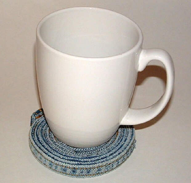 Подставка для чашки! Делов-то: просто склеить тонкую джинсовую ленту.